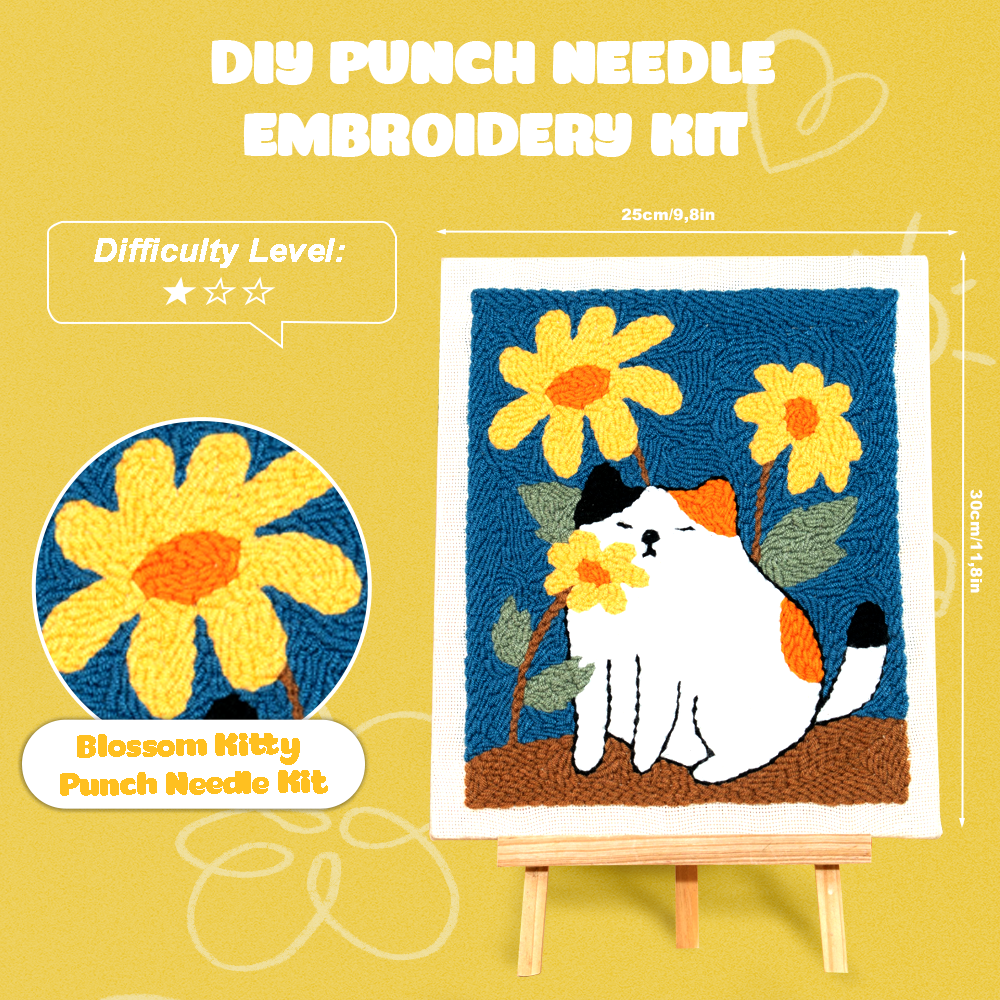 Every punch brings a touch of warmth and charm, making Blossom Kitty the perfect companion for your collection. With our super-easy step-by-step instructions, you’ll soon create your very own unique punch needle masterpiece, adding a delightful and cozy touch to your creative world!